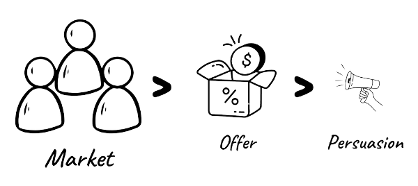 You see, there are three points of leverage when it comes to marketing your services - the market, the offer, and the persuasion.