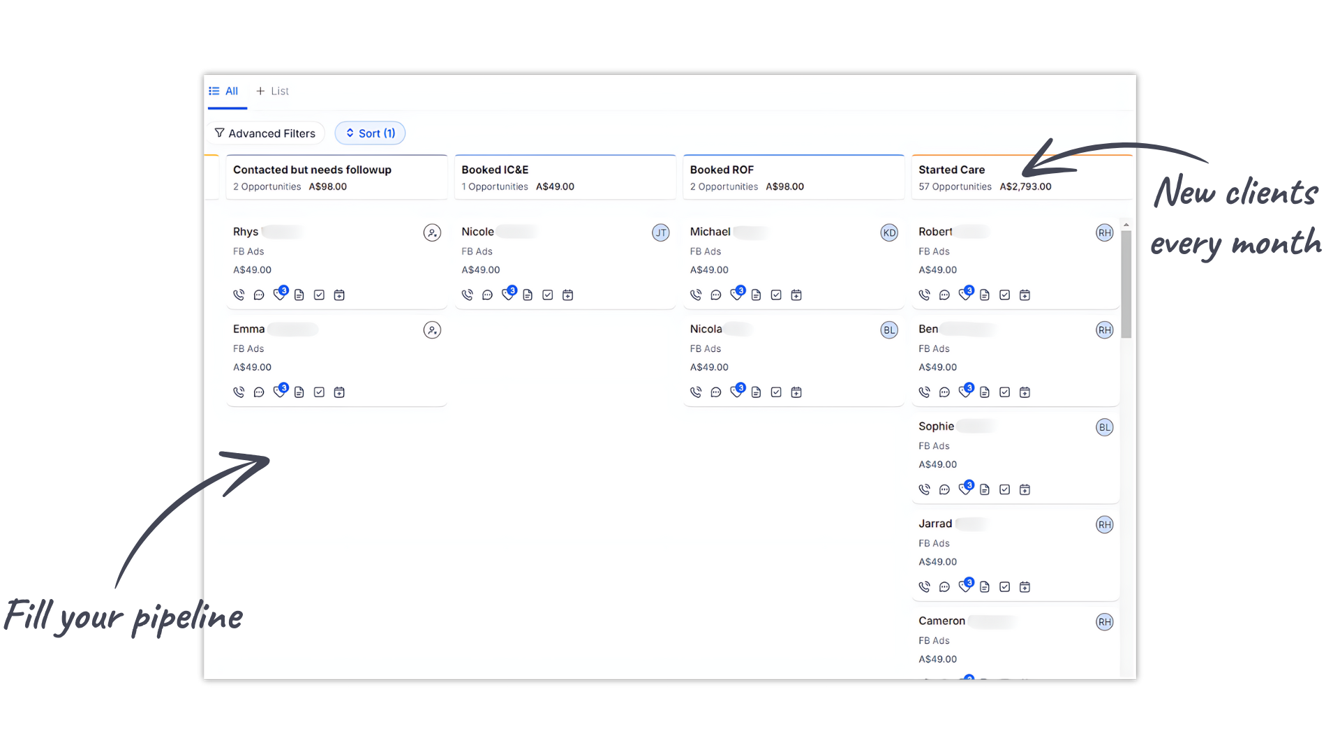 During this time, I developed and refined a “lead generation system” that is responsible for bringing in high-quality leads and booked appointments for my clients.